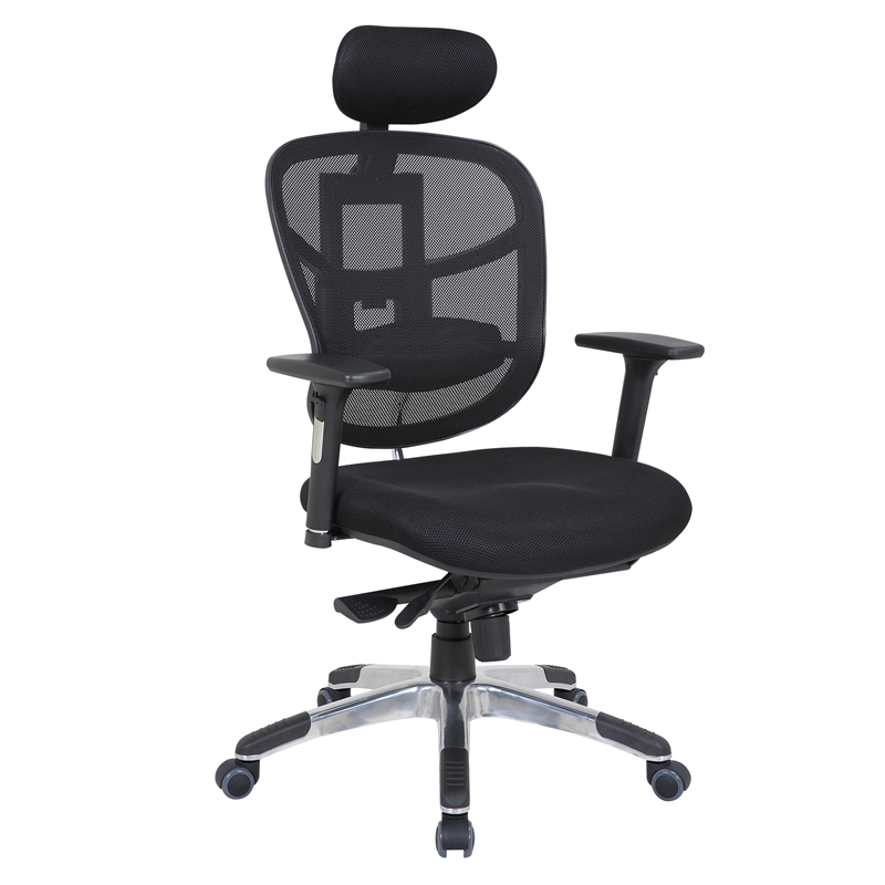 1) Altura ajustable y ángulo trasero bloqueado. 2) Mesh back with black PP back frame + steel fixed lumbar support; 3) PP adjustable armrest 4) BIFMA pasó CLASE 6